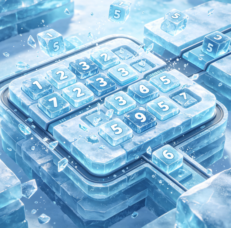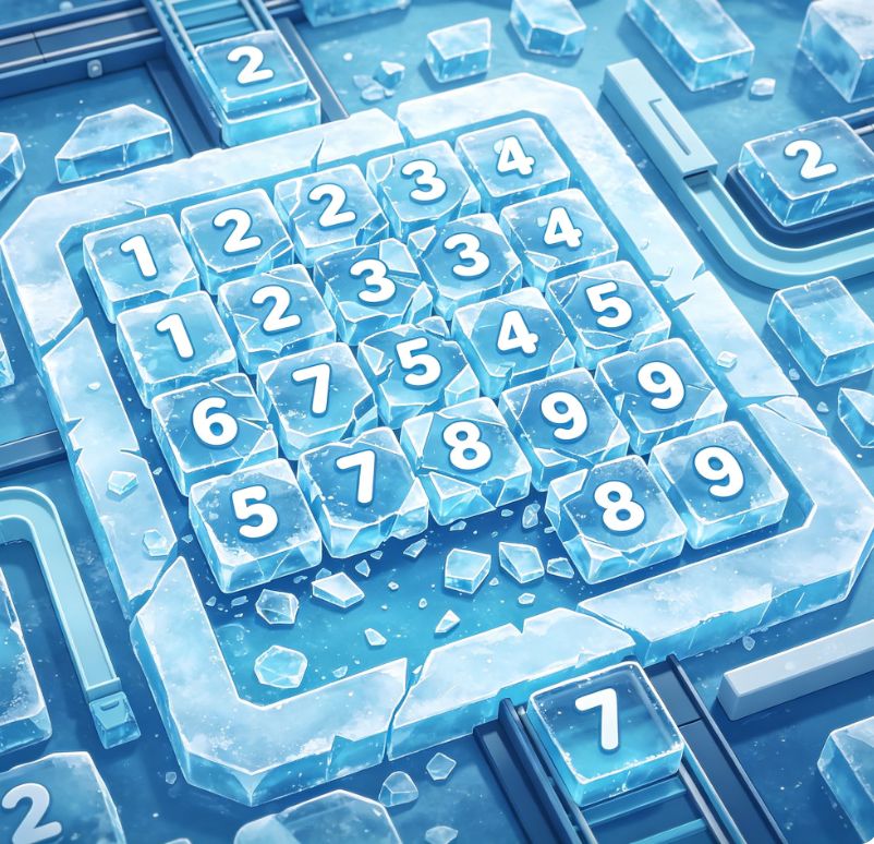 A number-matching puzzle game centered around the theme of shattering ice blocks. Players must smash numbered ice blocks—either by tapping or striking them—to merge identical numbers and upgrade their values. The game features approximately 105 levels, gradually introducing mechanics such as multi-layered ice, sliding tracks, and indestructible obstacles. Later levels require players to strategically utilize chain-shattering effects to achieve objectives within a limited number of moves, offering gameplay that is both satisfying and challenging.