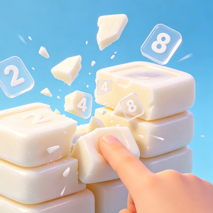 This is an innovative puzzle game that combines “stress-relieving slicing” with “number merging.” Players slice soft blocks of soap by swiping the screen, splitting them into multiple fragments—each bearing a number—that automatically merge and upgrade whenever identical numbers come into contact. The game features approximately 90 levels, gradually progressing from basic slicing mechanics to more complex structures, such as multi-layered soap blocks, elastic rebounds, and hidden number blocks. Later levels require players to achieve specific numerical targets within a limited number of cuts, offering a blend of satisfying stress relief and strategic thinking.
